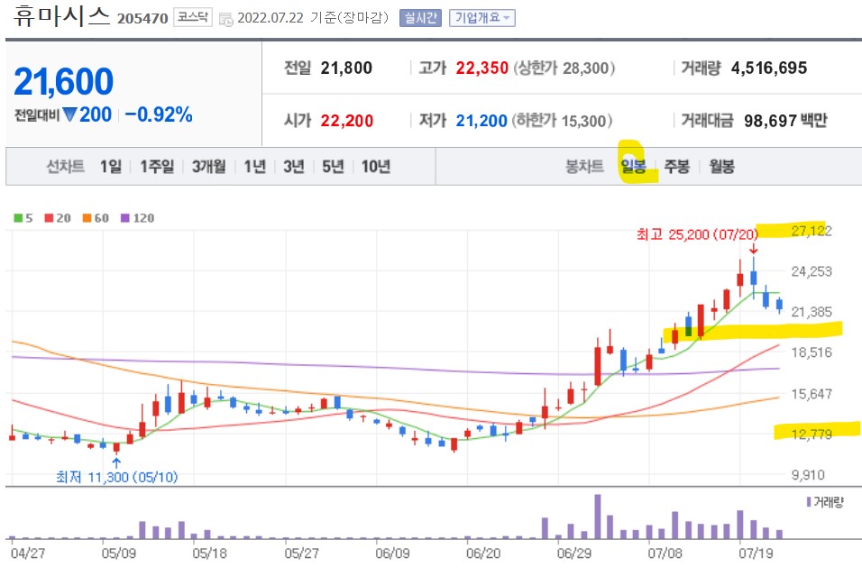 아래 종목은 진단 키트 관련주로도 벌써 유명한 종목이다. 다시 코로나 변이 바이러스의 확장세가 심해지고 있어 정부에서도 계속 강화하는 쪽으로 뉴스가 나오고 있다.